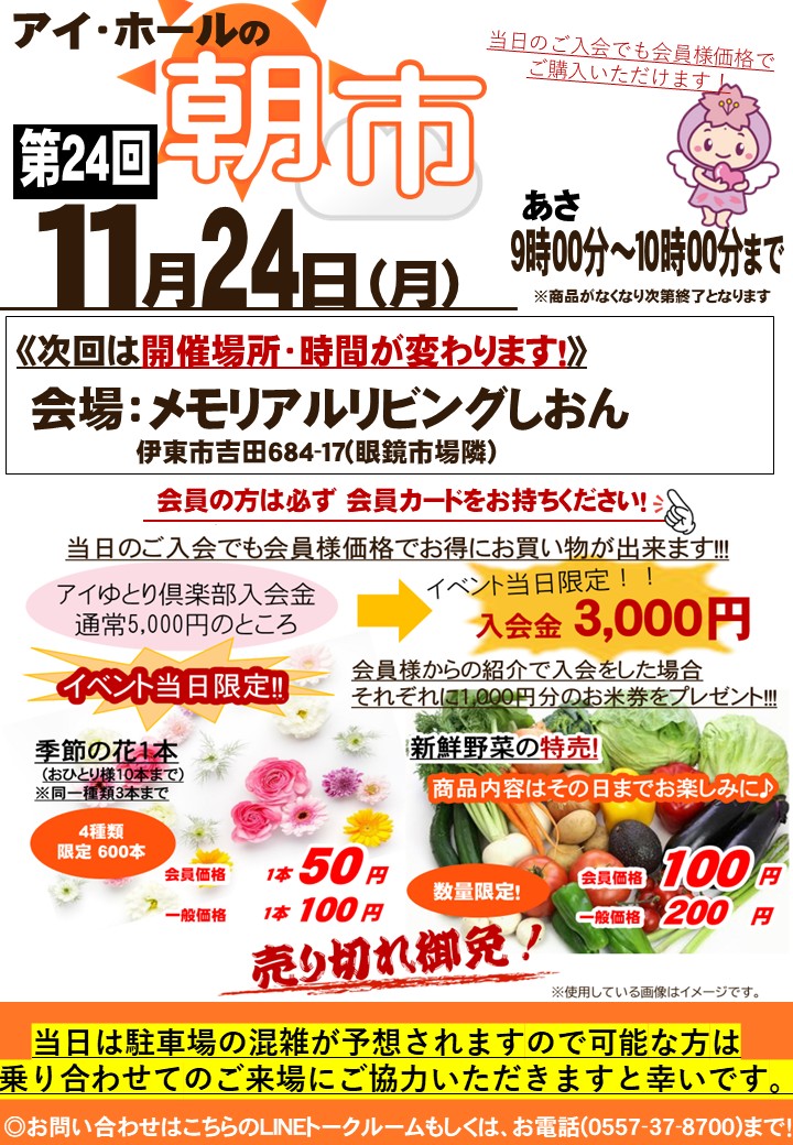 アイ・ホールの朝市ですが、ご好評につき毎回多くの方にご来場いただいております!
